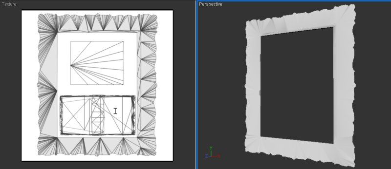 This mesh is not flat like a usual picture frame- it is modeled to be dimensional. The shadows you see are part of the mesh and the "shinyness" makes them show up more. This is what the mesh looks like with no texture: